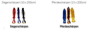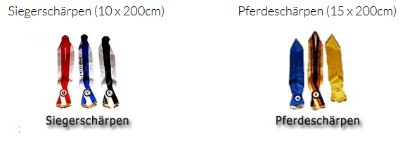 Ehren Sie besondere Leistungen mit unseren maßgeschneiderten Schärpen. Ob für den Champion, den besten Springer oder die beste Dressurreiterin – unsere Schärpen sind ein Zeichen von Prestige und Stolz. Gestalten Sie sie nach Ihren Wünschen und schaffen Sie bleibende Erinnerungen.